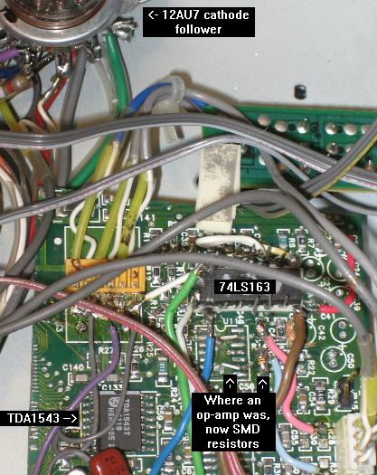 I replaced the old op-amps with. You can barely see those SMD resistors