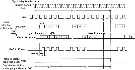cycles times the "word" length. Instead of 16 times the TDA1543 expected. The CXD2500 sends