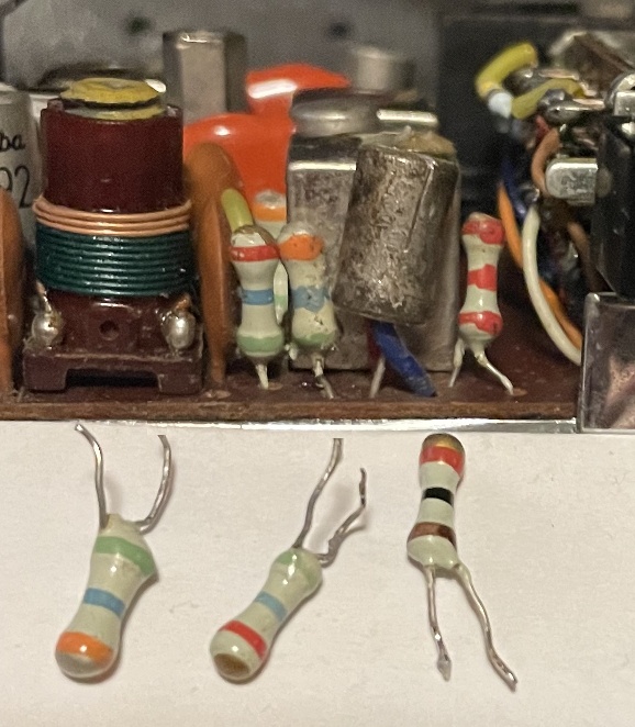 One of these upright resistors in my above homebrew GE T1290 AM/FM set.