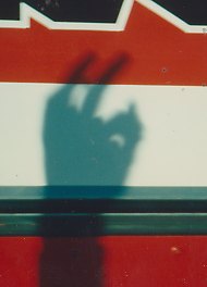 camera with my hand and the image projected on the side of our tour bus. From the prospective